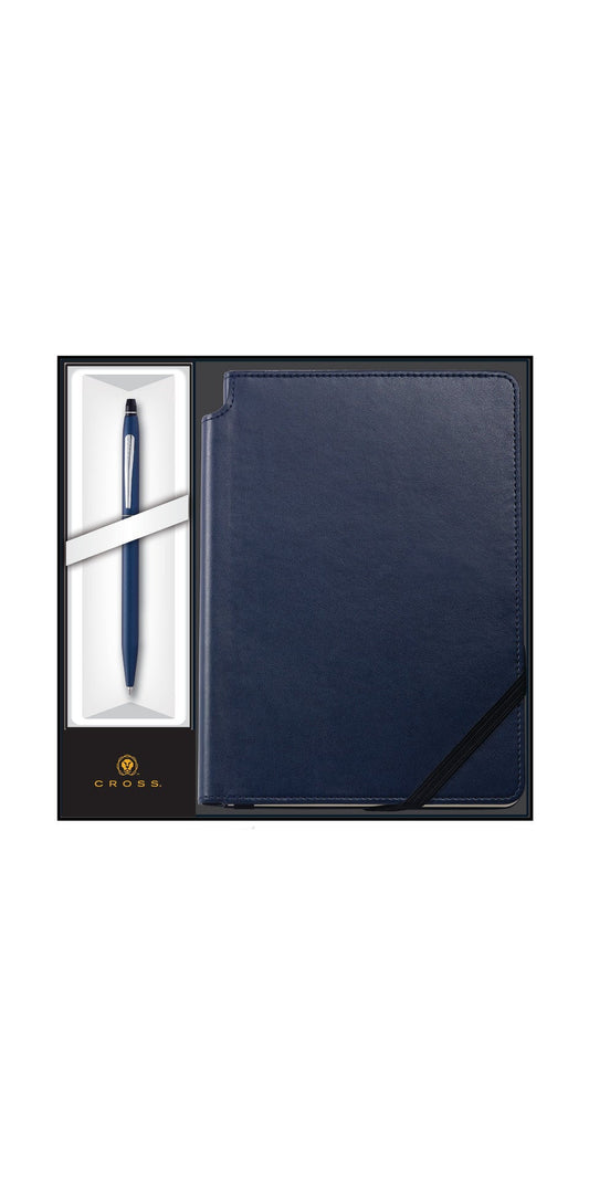 Juego para Regalo Cross Click de bolígrafo Laca azul mate y cuaderno mediano azul