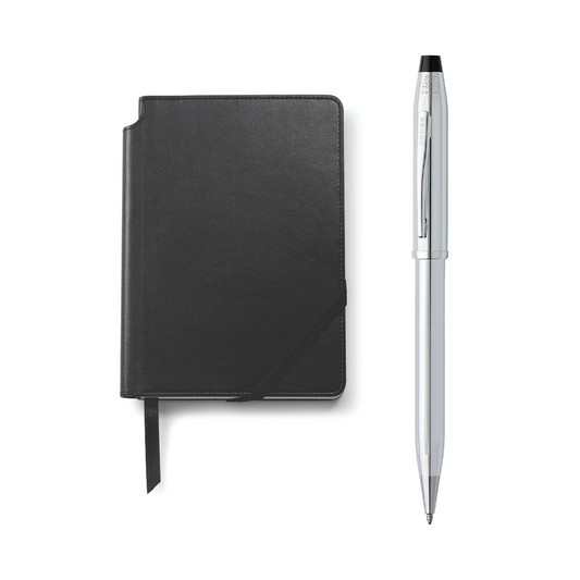 Juego para Regalo Cross Century® II de bolígrafo Cromado Brillante y cuaderno mediano negro